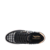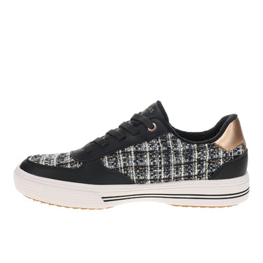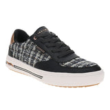 - Duraleather and boucle fabric upper with fixed stretch laces