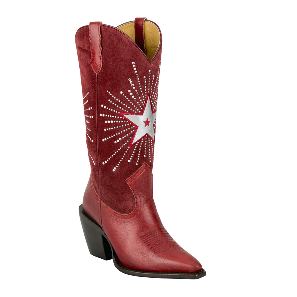 Radio 13 Inch Star Inlay Rhinestone Snip Toe Pull On Cowboy Boots