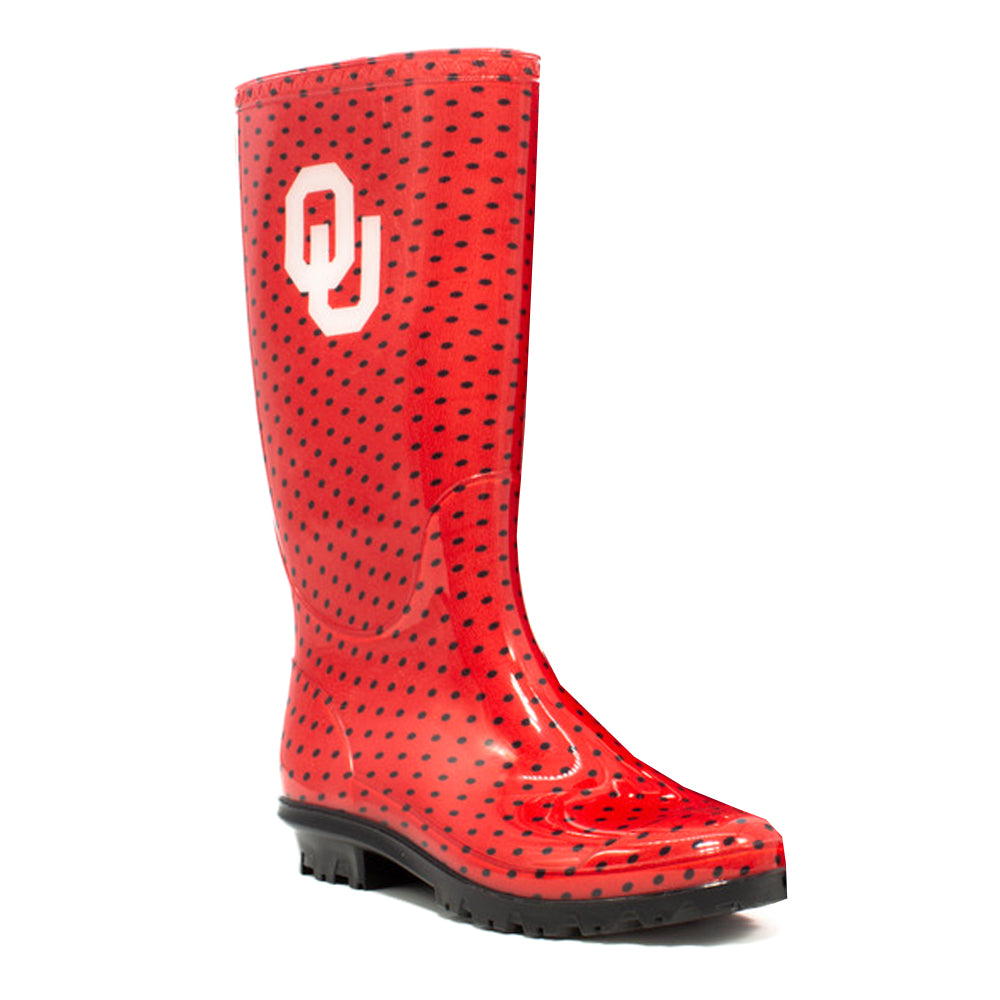 University of Oklahoma Polka Dot Round Toe Rain Boots